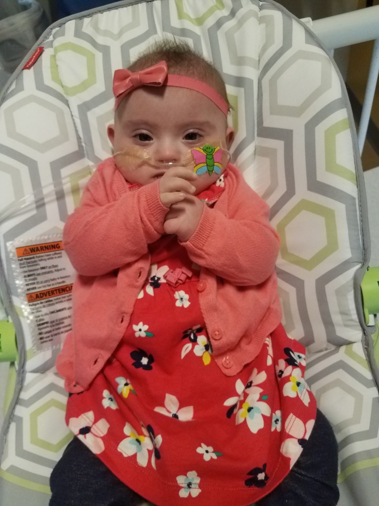 Within the week she is doing great, pain meds are being weaned and oxygen levels looking much better. After 2 weeks we finally went up to the main floor, out of the PICU, to recover and work towards going home. Before we knew it she was doing well and completely off of oxygen and they were getting us ready to go home. Mostly getting supplies ordered as far as formula and meds went. We would keep the oxygen supplies just in case we needed it at any point. Fingers crossed we wouldn’t though!